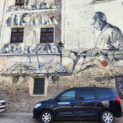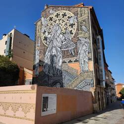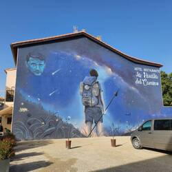 Cooler temps & clouds for our short walk today. As we said "adios" to Belorado we saw more beautiful murals walking out of the village.