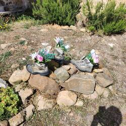 15 miles today! When we left Najera this morning at 8AM the temp was 52 degrees. When we arrived at Santo Domingo this afternoon it was 85 degrees. We walked through many miles of vineyards during the first half of the day. Workers were harvesting the grapes and trimming the vines. It is hard work especially when it is hot. There is no shade at all. The workers could not have been more gracious to us. They came to the side of the road offering me grapes. (I had to decline as it was too early in the day for blue lips and sticky hands 🙃) Most of the roads we walked today were dusty & gravely. I was grateful that our walk was broken up by stops in 2 little towns along the way. It makes a huge difference to sit in the shade, drink something cold & have a chance to use the "water closet." This stretch of the Camino must have been brutally hot this summer! I was grateful that we even had a tiny breeze.On the last long stretch there was a handwritten sign three quarters of the way up that said " Cheer Up" we have cold drinks in 100 meters. Not only were there cold drinks to buy there was also a small shaded park to take a rest in!
