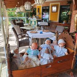 #4 We stopped for lunch & had a really good salad, homemade bread with delicious olive oil at our last stop. It was a kind of fancy place for such a small village. The restaurant had this baby crib full of cute baby dolls (a little weird, but cool) & we met Vince from Detroit. We walked & talked with him & it made the last hot, dusty leg into Belorado seem pretty short!