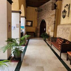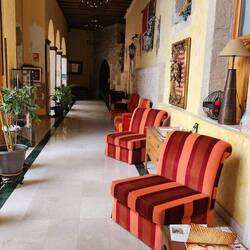 Out hotel serves a Pilgrim meal for dinner tonight. There's not much here in the town so we will most likely have a chance to catch up with friends from Texas & the French couple who shared figs with us yesterday. We have seen many familiar faces this afternoon as we all had time to catch up with email & social media in the sunny sitting places that the Hotel San Anton Abad has provided.