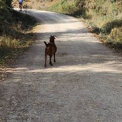 Our day began at 8AM with climbing a long uphill & seeing the sun come up. It was so chilly we could see our breath. It ended at 4:30 after a steep & rocky climb in the hot sun into our final destination of Cardenuela. The large, cold beer in the frosted mug was the best beer I've ever tasted! In between we passed through 4 villages, visited 1 church, stopped at 2 cafes, enjoyed a peaceful woodland trail, had a group of high school students pass us, came upon 5 goats, walked along a hot & boring road, and saw a labarynth. There was much more, but I'm too tired to recall many more details!Leer más