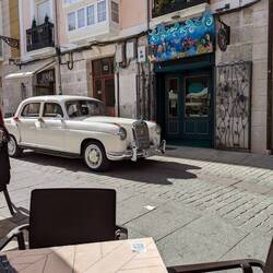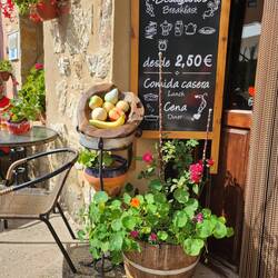 We started the day with a wonderful breakfast at Pension Casa Wasala.. Paul asked us last night if we like eggs for breakfast. Yes of course! The only eggs we have seen have been hardboiled. Today, scrambled eggs, thinly sliced Spanish ham, bread, jam and yogurt with fruit. And a big carafe of hot coffee and cream! Heaven!