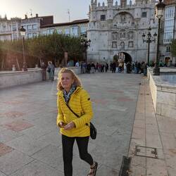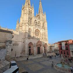 This morning we left Cardenuela before the sun was up around 8AM. It was cloudy & chilly, about 48 degrees. It was about 7 miles to Burgos, a big city with a very big cathedral. Much of our walk was along a river.