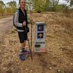 We walked and uneventful 10k to the small city of Sahagun. Some where east if the city, approximately 383.5 kilometer mark we crossed the half way point of our walk.