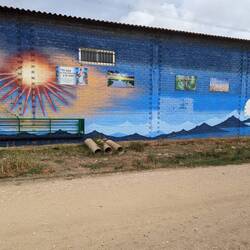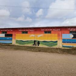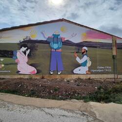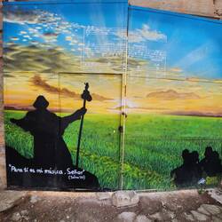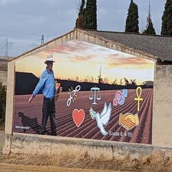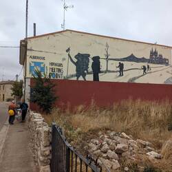 We walked to our destination town, up on the Meseta plateau. There was an intermediate town with great murals. Followed by a steady, but not steep hill climb of about 7 kms.