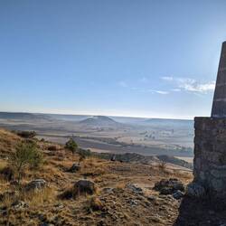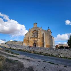 We set off today a little after sunrise. The valley was filled with fog as we walk up the hill in Castrojeriz. We were treated to the full moon hanging over the Castillo ruins at the top of theMeer informatie