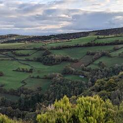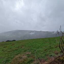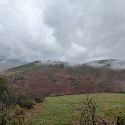 It has been a month of walking, this afternoon was the first day we walked under a steady rain. And windy, as we walked over the top of several low hills in the valley.