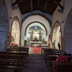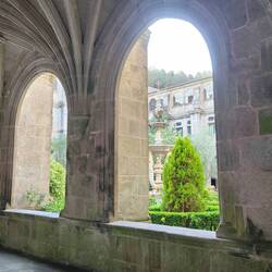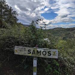 We continued our walk down the Mountain to the town of Tricastela, then followed down the Rio Obibio, until we reached the small village of Samos. Samos has a huge Benedictine Monastery. I have a fewLeggi altro