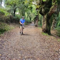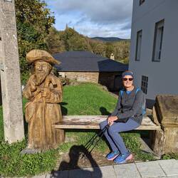 What a gift today's weather has been! Wore shorts & a t-shirt for the first time in a couple of weeks. Sunshine & blue sky was with us through our mostly woodland, rolling-hill walk to Sarria. ThereLeggi altro
