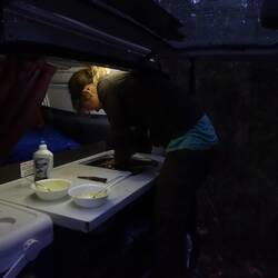 Having jealously looked at all the people with vans in New Zealand, we were excited to finally get our own. We got the paper work done and then got an introduction into our rental van: how to check cooling water and oil levels, how the sink works, etc. Only when driving away we slowly realised that we didn't really believe this van was from the claimed year 2010. It doesn't even have electronic windows or airbags and looks surprisingly similar to the 20 year old van Susanne owned in New Zealand 10 years ago. We also really had to get used to the manual transmission, especially given that the shifter is on the left and had seen better days. But after awhile we got used to it.