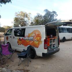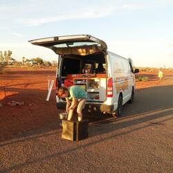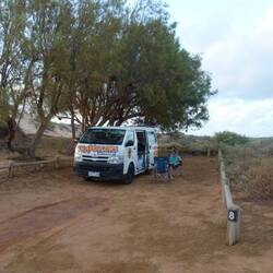 Due to the way the timezone works in Western Australia, the sun sets and rises early. So while it was going down we were having dinner and when we cleaned up it was almost dark. It was clear that we had to stay in this rhythm for awhile to make the most out of our days here. When we went to bed it was still pretty warm but during the night it cooled down and thanks to a window with mosquito net that this particular van has, we even had some fresh air in the night.Baca lagi