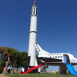 Then we quite spontaneously decided to visit the Space and Technology Museum. Turned out to be really good. Carnarvon played a role in the lunar Apollo missions in the 60's and they had loads of information and props about it. When we first entered an employee showed us a NASA launch simulator, in which we were sitting/lying on our backs in a control capsule while listening to the radio transmission of the actual launch in real time. We had a countdown and even 'windows' that turned real fiery at lift off. Right when we were convinced we were on the way to the moon, the employee opened the door behind us. "How was it?" Little did he know we were secretly looking forward to spend some time away from Earth, away from the bush flies, the heat and humidity, and corona. We enjoyed the rest of the time there with some more learning and playing some oldschool space games.