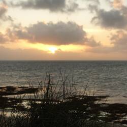 We enjoyed a lazy afternoon, Susanne had a walk to the local beach which looked a bit too wild and lonely to swim but had interesting red sand features, and explored a heritage site building on the camp ground when trying to watch the sunset which again was happening behind clouds.Baca lagi