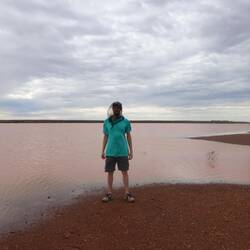 On the way we also drove by another pink lake like we've seen on the west coast. We had to climb over a fence to get near this one though. We also ended up overtaking our first roadtrain! Took a while to find one that drives slower than us.