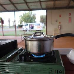 We drove further to find a place to sleep. We had the choice of two highways here, such a luxury. We could stay on the 95 or go on the similarly ETA'd 115. We chose the latter because the campsite options along it were more favourable. However after a few km they announced roadworks, which is normally fine but in this case the road was completely unsealed for quite some time. We're not allowed to drive too far on that so we stopped and checked the road services website. As that wasn't informative enough we had to call them, but the employee on the phone was more than useless. We didn't see it return to sealed for awhile and the website indicated it might be the case for another 40km. So we had to turn around and take the other highway while looking for alternative rest stops as the sun went down. Not ideal for driving but we made it to a very nice community camping in another tiny town.Baca lagi
