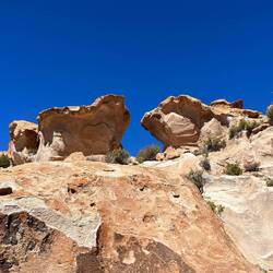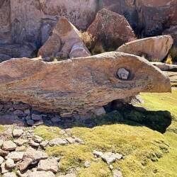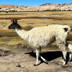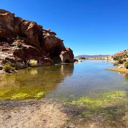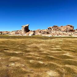 In der Schwarzen Lagune gab es viele Grashubbel im Sumpf, Felsen, vereiste Flüßchen, schöne Ausblicke und Lamas und Hasen. Ein schöner Spaziergang!