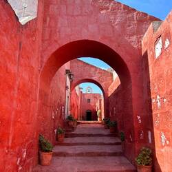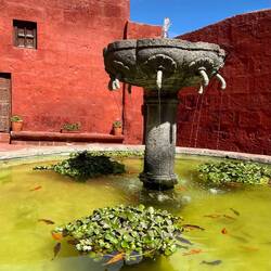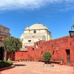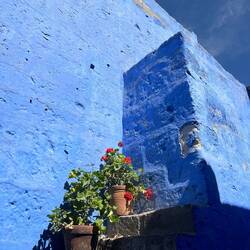 Arequipa, the white city of Peru. I'll explain the name later. Let's start with the highlight: The Sta Catalina monastery. Beautiful!! Once inhabited by a maximum of 250 nuns, 20 still live here today, so not all areas are accessible, but with a total area of 20,400 square meters that is not noticeable. The whole complex is separated from the rest of the old town by a high and thick wall and built from Sillar, the white volcanic rock. This is mined just a few kilometers from Arequipa. Resistant, slightly porous and not sooo light. A pillar stone weighs 50kg. Together with a protein mortar mixture and the general tupe of construction, the whole thing has proven to be relatively earthquake-proof. The city is located between 3 volcanoes, therefore this is very helpful. According to the guide, there are an average of 4 small tremors every day, but the last major earthquake was more than 20 years ago, in June 2001 with a magnitude of 8.3. So since the rock is white, it is very glaring in the sun, causing eye damage, so many of the exterior walls of the monastery were painted red and blue. The air here is extremely dry (you can feel it in your eyes, nose and throat). The layers of paint therefore crumble into dust every few years and have to be renewed. Of course, the indigo blue was great for me!! 😍Read more