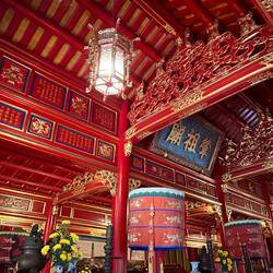 An important landmark is the 19th century citadel, surrounded by a moat and thick stone walls, now a UNESCO World Heritage Site. The seat of the emperors of the Nguyen dynasty from 1802 to 1945 - during that time Hué was also the capital. The exact location was determined using geomancy. The Forbidden City of the Chinese Ming Dynasty served as a model, which it followed in a smaller format. Thousands of workers built a 10 km long earthen wall around a nearly square area, surrounded by a moat more than 20 m wide. The earthen wall was later replaced by a stone wall. The emperor's rule lasted until the middle of the 19th century. Until then, the innermost part, the Forbidden Purple City reserved for the ruler and his family, comprised many buildings and several hundred rooms. The building structure suffered from termites and cyclones, but remained impressive. During the Battle of Huế during the Tet Offensive, US forces carried out targeted bombing raids against the citadel and the North Vietnamese army and the Viet Cong positioned there. In these fighting, which lasted until February 24, 1968, the old imperial city was completely destroyed. Thanks. Only 4 of the temples remained. Traces of this battle can still be found in the stone surrounding walls. Nevertheless, the area that still exists is huge, you can spend hours here. It's just a real shame that when you pay the full price you aren't told that the two main buildings are unfortunately completely cordoned off. I feel very resentful about that. 🤨Read more