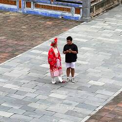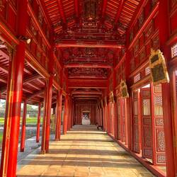 Ein wichtiges Wahrzeichen ist die Zitadelle aus dem 19. Jahrhundert, umgeben von einem Graben und dicken Steinmauern, heute UNESCO Weltkulturerbe. Der Sitz der Kaiser der Nguyen-Dynastie von 1802 bis 1945 - solange war Hué auch Hauptstadt. Der genaue Standort wurde mittels Geomantie ermittelt. Als Vorbild, dem sie in verkleinertem Format folgte, diente die Verbotene Stadt der chinesischen Ming-Dynastie. Tausende von Arbeitern errichteten um eine nahezu quadratische Grundfläche einen 10 km langen Erdwall, der von einem mehr als 20 m breiten Wassergraben umgeben ist. Später wurde der Erdwall durch eine Steinmauer ersetzt. Die Herrschaft des Kaisers dauerte bis zur Mitte des 19. Jahrhunderts. Bis dahin umfasste das Innerste, die dem Herrscher und seiner Familie vorbehaltene Verbotene purpurfarbene Stadt viele Gebäude und mehrere hundert Räume. Die Bausubstanz litt unter Termiten und Zyklonen, blieb aber imposant. Bei der Schlacht um Huế während der Tet-Offensive flogen die US-Streitkräfte gezielte Bombenangriffe gegen die Zitadelle und die dort in Stellung gegangene nordvietnamesische Armee und die Vietcong. Bei diesen Kämpfen, welche bis zum 24. Februar 1968 andauerten, wurde die alte Kaiserstadt vollständig zerstört. Danke. Lediglich 4 der Tempel blieben erhalten. In den steinernen Umfassungsmauern sind noch heute Spuren dieser Schlacht zu finden. Nichtsdestotrotz ist das noch vorhandene Areal riesig, man verbringt Stunden hier. Nur wirklich schade, dass man beim Zahlen des vollen Preises nicht gesagt bekommt, dass due zwei Hauptgebäude leider komplett abgesperrt sind. Ich bin da sehr nachtragend. 🤨