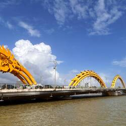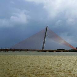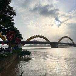Ich verlasse das schaurige Hoi An (also wettermäßig gesehen) und fahre noch nicht mal eine Stunde nach Da Nang, wo man gleich mal Strand sieht, aber auch die roten Fahnen - zu hohe Wellen zum Baden.Read more