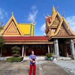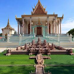 We decide on a guided private tour so that we can see as much as possible in one day. The Royal Palace of Cambodia is a complex of buildings which serves as the official royal residence of the King of Cambodia. Its full name in Khmer is the “Preah Barom Reacheaveang Chaktomuk Serey Mongkol”. Oookaaayyyy. The Cambodian monarchs have occupied it since it was built in the 1866s, with a period of absence when the country came into turmoil during and after the reign of the Khmer Rouge. You should know that the Cambodian kings were very fond of moving the royal seat and thus the capital. At some point I gave up listening because a) I didn't understand the names of the kings anyway with what seemed like eight syllables and b) I couldn't tell them apart even if I had understood them, since the kings each had a new name at birth, at coronation and after received death. And all so long. Oookaaayyyy. The Silver Pagoda also has three names. It is covered with silver floor tiles, which you can hardly see because there are carpets everywhere. The current king has no children. So if he dies, there will be a year of mourning and then a new king is “elected”! So Cambodia could be without a king for two years until someone is crowned again. I would like to see the festival, it is certainly bombastic.Read more
