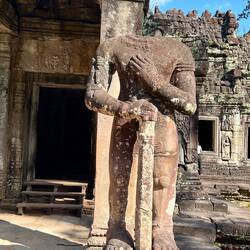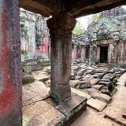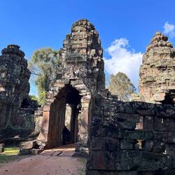 After a pleasant morning (yesterday was really intense because it was hot and long), we had the honor of having Sokha as our tuk tuk driver again. This time no real tour, just like that. We start with the Preah Khan, which we couldn't manage on the first day. Flat temple, two-axis and here too a lot of decay. What's impressive here is the sheer number of rooms. We only count one axis and get 35 rooms. However, this does not include any space that the temple still had in the areas formed by the 2 axes.