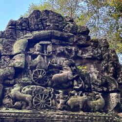 Google: Preah Khan used to be a real city complex, including a university with 1000 teachers and water. This is where the king lived while Angkor Thom was being built. Like all earthly buildings, the royal palaces and all other houses were made of wood; stone was reserved for the temples. As a result, nothing of the residential buildings has survived. In the mid-13th century, under King Jayarvaman VIII, the complex was temporarily Hinduized, the Buddha statues and reliefs were destroyed or re-carved (as in all the other buildings here, the idiot, as already mentioned).Read more