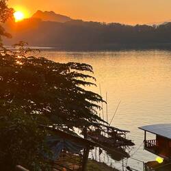 So, all sarcasm aside. I had read beforehand that it was a bit complicated. So either by bus (6 hours), car (5 hours) or train (1.5 hours). Well, then I'll take the train, since the roads here aren't that great either. I ordered a return ticket 4 weeks ago. After the order was finished, they said that the tickets would only be activated shortly beforehand and they couldn't guarantee that you would get your booking class. Well, any other class wouldn't matter. The fact is, the tickets are released for sale by the train company only 3 days before the departure. Super cool for any travel planning. To purchase you need a Laotian (!) bank account from which you have to transfer. Yes, that's where the fun begins. You can't even pay cash in local currency! Who came up with this nonsense? As a tourist, you are excluded from buying tickets and have to rely on middlemen. I'll cut it short: I didn't get my ticket for the 15th as ordered, but I did get one for the 16th at 7:30 a.m. That said, I had to rebook my hotels. Pick up to the train station (30 minutes outside of the city) was scheduled between 6:00 a.m. and 6:30 a.m., but the driver didn't come. That meant I had to jump into a tuk tuk at the last minute, where I was ripped off in terms of price, of course. When I arrived at the train station (07:15 - 15 minutes before departure), I had to skip the line because there was a long queue at the passport control at the entrance. It was clear to me that there was no other way to do it in terms of time. Then baggage security check. I was fished out because I had whiskey with me. Yes, sure! So unpack everything and prove that this is a bottle of oil. Thanks for nothing. Run over to the other end of the hall where - you guessed it - there was ticket and passport control again. 5 minutes to go. Run over to platform 3, i.e. down the stairs and up again, good training with the backpacks if you weren't still sick. Jump on the waiting train and take a deep breath. 7:27 am. Train actually left at 7:29 am. Some certainly didn't make it. I was exhausted for the rest of the day. 😂 The train: lots of legroom and recharge options, but no tables or garbage containers. The toilets were cleaned every 30 minutes, including wiping, and a not untasty food cart came through. I also counted 4 different train crew uniforms. Now I understand why the train is so much faster than the bus: we covered several kilometers going through tunnels. I think the Chinese (of course they built this railway line and certainly financed it, because it goes up to China) just cut their way straight through the landscape. When I arrived in Luang Prabang, I emerged from a monstrously large, new train station building. Far too oversized for the nest here. This train station is also 10km outside the city. Public transport, yes, but please only with a car to connect. There are shared taxis for 1.80 euros. Luckily I get dumped on my street, actually find my accommodation and fall into bed. In the afternoon, hunger drives me out, I pamper myself for the earlier excitement in a French restaurant and am the only guest for a long time. In the evening I watch the sunset on the banks of the Mekong. The day ends just in the same monk's robes colours as it began, at 6 a.m....Læs mere