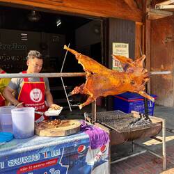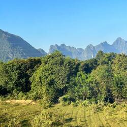 So, und nun mal aller Sarkasmus beiseite. Ich hatte ja vorab gelesen, dass es etwas kompliziert ist. Also entweder mit dem Bus (6 Std.), Auto (5 Std.) oder Zug (1,5 Std.). Na, dann nehm ich doch den Zug, da die Strassen hier auch nicht so der Hit sind. Habe mir vor 4 Wochen ein Hin-und Rückfahrtticket bestellt. Da hiess es nach Abschluss, dass die Tickets erst kurz vorher freigeschaltet werden und sie nicht garantieren können, dass man seine Buchungsklasse kriegt. Naja, andere Klasse wäre ja egal. Fakt ist, die Tickets werden 3 Tage vor Abfahrt von Laos Fast Train freigeschaltet. Man braucht für den Kauf ein laotisches (!) Bankkonto, von dem man überweisen muss. Jo, da fängt der Spaß auch schon an. Man kann nicht mal cash in Landeswährung zahlen! Wer hat sich den Schwachsinn ausgedacht? Du bist also als Tourist vom Ticketkauf ausgeschlossen und auf Mittelsmänner angewiesen. Ich kürze mal ab: Mein Ticket für den 15. bekam ich nicht, aber eines für den 16. um 07:30 Uhr. Hiess, ich musste Hotels umbuchen. Pick up zum Bahnhof (30 min außerhalb von der Stadt) war zwischen 06:00-06:30 angesagt, Fahrer kam nicht. Hieß, ich musste auf den letzten Drücker in ein Tuk Tuk springen, wo ich preislich abgezockt wurde, eh klar. Am Bahnhof angekommen (07:15 - 15 min vor Abfahrt), musste ich superfrech vordrängeln, weil ewig lange Schlange bei Passkontrolle am Eingang. Mir war klar, das ginge sich zeitlich nicht mehr anders aus. Danach Gepäckkontrolle. Ich wurde rausgefischt, weil ich Whisky mithätte. Ja, klar! Also alles auspacken und beweisen, dass das eine Flasche Öl ist. Danke für nichts. Rüberrennen ans Ende der Halle, wo - ihr erratet es sicher - wieder Ticket und Passkontrolle war. 5 min vor. Rüberennen auf Plattform 3, sprich Treppe runter und wieder hoch, gutes Training, wenn man nicht noch krank wäre. In den wartenden Zug springen und durchatmen. 7:27 Uhr. Zug fuhr tatsächlich 07:29 Uhr los. Einige haben es sicher nicht geschafft. Ich war erledigt für den Rest des Tages. 😂 Der Zug: viel Beinfreiheit und Lademöglichkeiten, keine Tische oder Müllbehälter. Dafür wurden die Toiletten alle 30 min geputzt inkl. Wischen und ein nicht unleckerer Essenswagen kam durch. Ich habe auch 4 verschiedene Uniformen des Zugpersonals gezählt. Jetzt ist mir auch klar, warum der Zug so viel schneller ist als Bus: wir haben etliche Kilometer untertags zurückgelegt. Ich glaube, die Chinesen (die haben diese Bahnstrecke natürlich gebaut und sicher auch finanziert, denn die geht hoch nach China) haben sich einfach geradeaus durch die Landschaft gefrässt. In Luang Prabang angekommen, entsteige ich einem monströs großen, neuen Bahnhofsgebäude. Viel zu überdimensional für das Nest hier. Auch dieser Bahnhof ist 10km ausserhalb der Stadt. Öffi ja, aber bitte nur mit Autoanbindung. Es gibt Sammeltaxis für 1,80 Euro die Nase. Ich werde an meiner Strasse ausgekippt, finde tatsächlich meine Unterkunft und falle ins Bett. Nachmittags treibt mich der Hunger raus, ich verwöhne mich für die Strapazen in einem französischen Restaurant und bin lange Zeit der einzige Gast. Abends noch den Sonnenuntergang am Mekongufer anschauen. Der Tag endet genauso mönchskuttenorange, wie er angefangen hat, damals, um 6 Uhr…