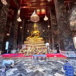 Wieder einer dieser Namen! Wat Suthat Thepwararam Ratchaworamahawihan. Und dazu ist es ein Königstempel erster Klasse? Wir sind gespannt. Nur soviel: ein riesiger, goldener Buddha thront in einerLæs mere