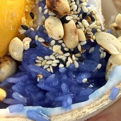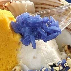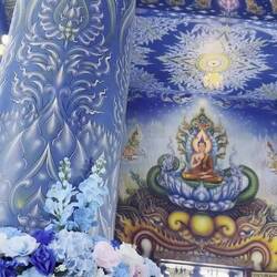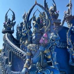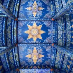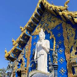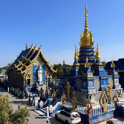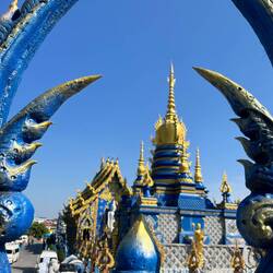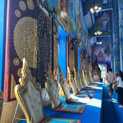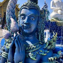 Nach weiß kommt blau. Ist zwar schön, kommt aber nicht an den weißen Tempel heran. Aber das Eis, das ist lustig. In den Farben des Tempels gehalten: blau, gold und weiss (weil Kokosnuss).