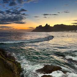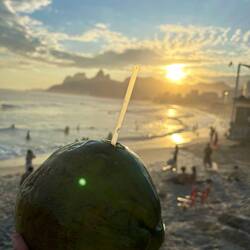 Auf Empfehlung meiner Guide Solange gab‘s den Sonnenuntergang heute eine Bucht weiter, in Ipanema, auf einem Felsen sitzend - mit Kokosnuss-Drink.