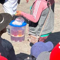 Und nicht zu übersehen, die allgegenwärtigen Strassenverkäufer(innen). Ich gender mal ausnahmsweise, denn es sind zu 95% Frauen und Kinder, die das machen. Jegliches Art von Essen gibt es dort, meist zwischen 1-5 Soles (30 ct - 2,50 Euro). Die Mutigen probieren nach einem sonnigen, warmen Tag abends die Hühnchenfleischspieße.