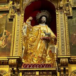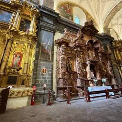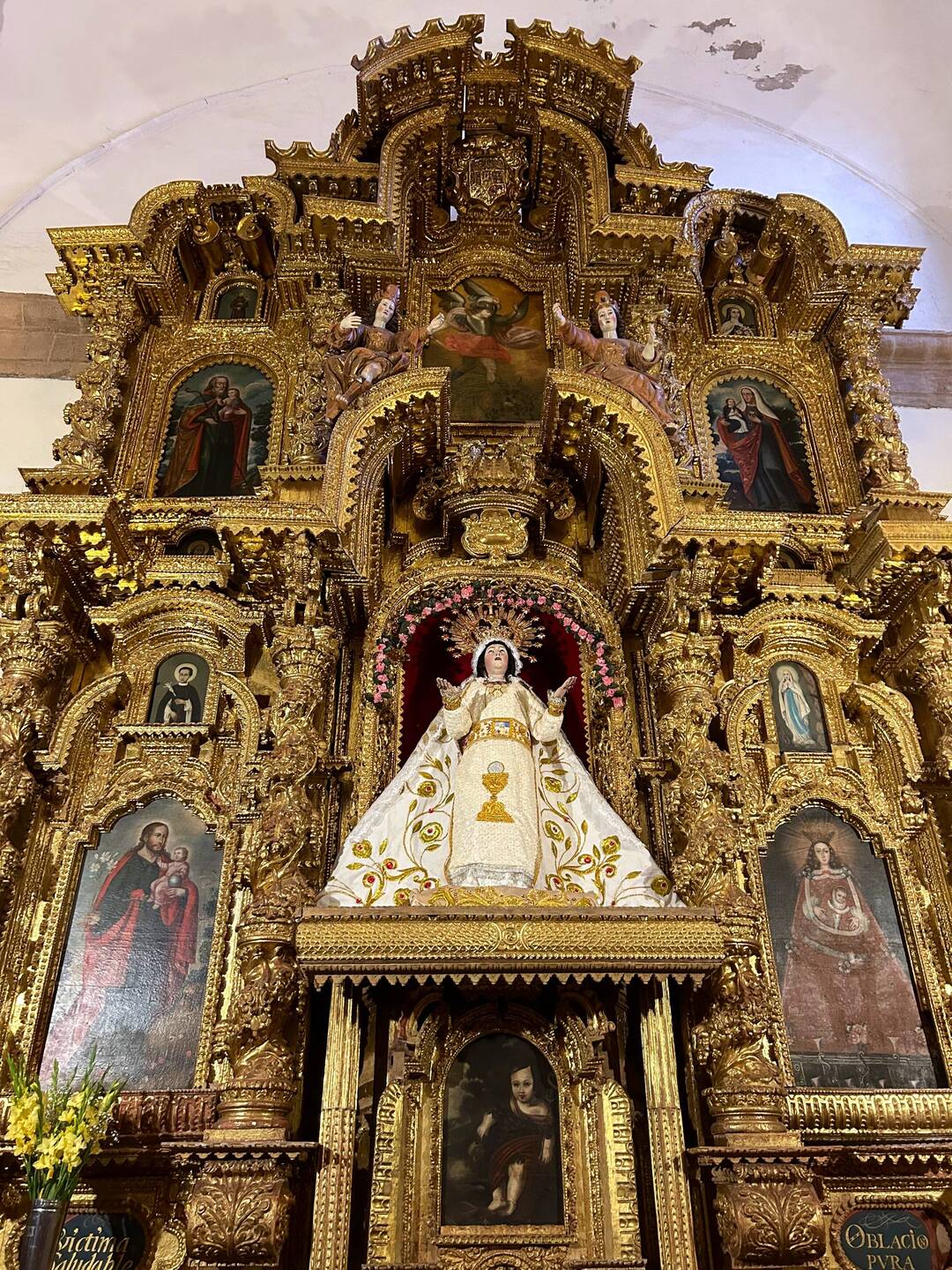 Und dann der schwarze Jesus, der eigentlich keiner ist. Ursprünglich aus Zedernholz, aber über die Jahrzehnte von Kerzen schwarz gefärbt, wird das Kreuz mit ihm dran jedes Jahr in einer Prozession in der Osterwoche durch den Ort getragen, um den Opfern des Erdbebens von 1650 zu gedenken. Denn der Überlieferung nach, stoppte das tagelange Erdbeben damals direkt zu den Füssen des Jesus, der seitdem auch der Erdbebenheilige genannt wird. Als letztes will ich die Spiegel erwähnen, die an den Säulen der Kathedrale und der Kirchen hängen. Während Spiegel in der europäischen Kunst als Zeichen der Eitelkeit galten, war das Sich-Betrachten im Wasser (Spiegel gabs nicht) in der vorchristlichen Inka-Kunst hingegen ein Zeichen des Charakters. Nur ein ehrlicher Mensch konnte in einen Spiegel schauen.