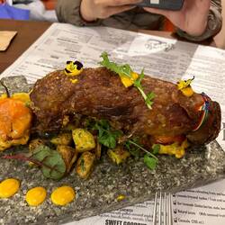 You are not allowed to take photos here, so all pictures are illegal. But it's too beautiful: the cathedral merges directly into two other churches on the left and right. You walk almost straight through all from right to left. Of course, all three are based on former Inca temples. In the cathedral itself, everything is covered by a chapel or an altar is built into every niche. A few special features stand out: The last supper…. Last Supper with guinea pig: The Peruvian painter Marcos Zapata (around 1710-1773) came from the indigenous Quechua people. For the Cathedral of Cusco, he painted Jesus and his disciples with the food, considered a banquet delicacy in the South American country. 🤣