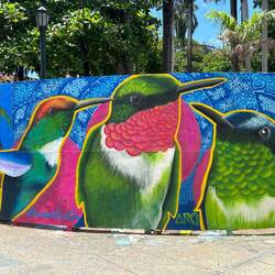 So, I won't allow myself any judgment at all. Only three days in the country and that in the same town... But: Colombia is colorful and hot! It's the rainy season, but temperatures are consistently above 30 degrees in the shade. But what shade? Logically, the street vendors and street performers claim it for themselves. They're not stupid. Before the rain it is extremely humid. You step out into the sun and just want to go back to the cold shower you just came from. When it rains, steam comes from every corner and that Finnish sauna feeling is there. Nevertheless, the locals actually wear long dresses and long trousers throughout, sometimes also long-sleeved tops. They save the short things for the hot season. 🤣🤣🤣 In some corners of Catagena de Indias you can see the traces of this moisture. Rotten balcony wood, peeling paint and mold on the walls. That even brings in a nostalgic note. But the old town of Cartagena is generally beautiful, by the sea and yet with green corners (parks). There are no trees along the road. No space, everything too narrow, the streets are therefore mostly one-way. The official yellow taxis drive without a taximeter, the price is fixed in advance. Being stupid helps. According to Colombian women, you should avoid certain corners away from the tourist zones, or only take taxis for the way, not walk. I was only really begged 3x - most of the guys offer something: as a photo model, food or drink seller, art or souvenir dealer. Some just buy a pack of lollipops and then sell them individually in front of the supermarket. Various police officers are visible, tourism police or the normal police. So you are relatively safe in the tourist bubble. Speaking of safety: the 13 km long city wall is several meters high in places - without railings. Natural Darwin’s selection is once again being practiced live here. The city also has a variety of beaches, but I skipped those because of the heat. Paradox, I know. But at least I bought a bikini again after 3 years. When I left the country, I was asked again why I was in the country at all. I could honestly deny drug dealing, although the day before in the park, while I was fascinated by a sloth 🦥, after a string of pearls (no, thanks) I was offered cocaine and other things. In short, they let me leave the country. Including calling out the names of all passengers when boarding. Pure customer orientation, data protection: pah.Baca lagi