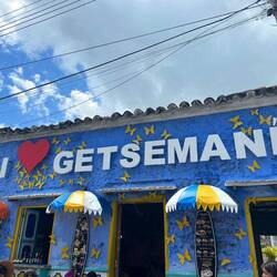 Getsemani war eines der schlimmsten Viertel der Stadt, was Prostitution, Mord und Drogenhandel anging. Das tat den schönen neugebauten Hotels innerhalb der Stadtmauer, nur einen Park entfernt, nicht gut. Also kaufte man den Einwohnern nach und nach ihre alten Häuser um zu wenig Geld ab und beruhigte somit das Viertel. Heute wird dort Kunst und Essen verkauft, einige Familien leben dort noch, aber kaum sichtbar hinter den schönen Fassaden, die riesige Innenhöfe verbergen.