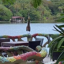 In the early morning (05:30am) we went to the National Park (NP). Better chances of animal sightings. The rain had cleared overnight. The in-house tiger heron presented itself and its youngster even before departure. 2 hours boat trip into the countryside. Me with 12 French people in the boat, but guide Walter came along especially for me to translate.Baca lagi