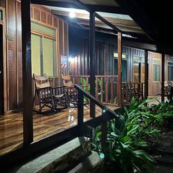 Laguna Lodge is a great place with a huge garden between the river and the sea. The bungalows are spacious, and you only share them with a few small geckos 🦎 and other bug stuff. The daily, nocturnal and in-between sounds of the animals living here come free of charge. Especially the birds give everything here. Will say, the sloths are completely drowned out... Food is local and very good and included in the overnight stay, drinks are not included. A soft drink costs 6 euros and the small glass of beer 5.20. A cocktail for only 7 euros quickly became a bargain. But logically, everything has to be brought here by boat first. Didn't spoil the good mood. You don't come here to party. And juice and fresh water were free of charge.Baca lagi