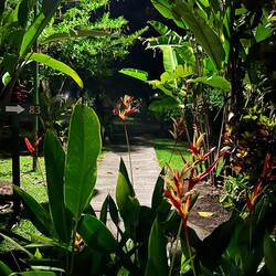 While you walk through the garden of the Laguna Lodge….