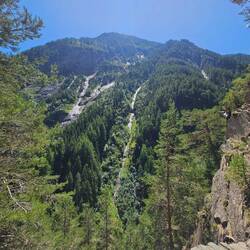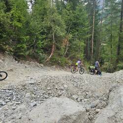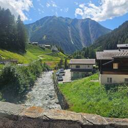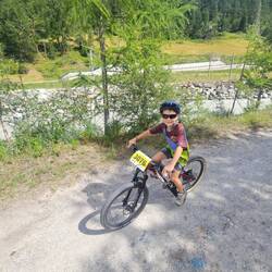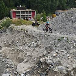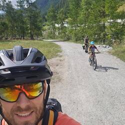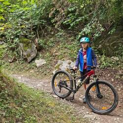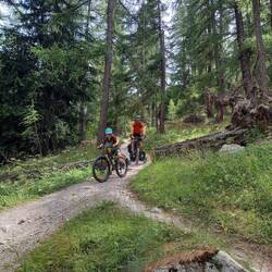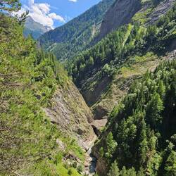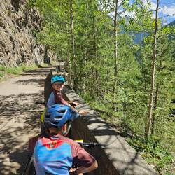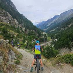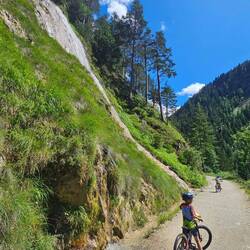 Nach der verdienten Abfahrt von Grächen nach St. Niklaus führt uns der Weg weiter durch eine wunderbare Schlucht. Zur Freude der drei Jungs gleicht der Weg eher einem Wanderweg als einem FahrradwegLæs mere