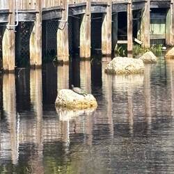 Monday, November 11 - We left Wrightsville between 10:00 and 10:30 for Carolina Beach. We took the ICW, the first time since heading south. We seldom sail when on the ICW but on the flip side there is more to look at than just miles of water so it’s a nice change. Weather was humid and drizzly but overall not bad. We secured the mooring ball with minimal effort, though I almost lost the boat hook. I had set it down on the starboard side after grabbing the mooring pendant and when I turned around after securing the line it was gone! 😳 I looked on the port side in the water and it was hanging down, hooked on the toe rail! Whew! I laughed but Kevin didn’t think it was too funny 🤭 This is one of my favorite anchorages. It’s protected nicely by land and while it is narrow there are only 10 mooring balls so it doesn’t get crowded. We also have not experienced fast power boats waking us. The town dinghy docks are close and there are several eateries to choose from.