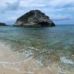 Thursday, March 7 - We began the day with snorkeling in an area we believe to be called the aquarium, but I’m convinced it was not the right area. Nevertheless we saw some colorful smaller fish and coral. In the afternoon we found a trail that took us to the other side of the island on the sound side where there is a massive boulder just offshore, it reminded me of a mini Gibraltar. We walked a good stretch of beach. The path was narrow and sandy, outlined with conch shells. The island was dense with trees growing fruit, palms and cacti. Dogs also got to run in the sand afterwards. The day was warm with low wind but cloudy, which was nice but my laundry didn’t dry 🤨Leia mais