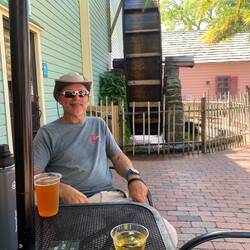 Saturday, July 6 - We got up at 5:30 a.m. and departed at 6:00 to try to be in Portsmouth by 3:00 during slack tide. It rained during the night and fortunately this time I moved a lot of items to keep them dry but the cushions and boat in general was still very wet. There was dense fog and we hoped as the day went on it would lift but it only got thicker. We spent the first 3 hours trying to spot and avoid crab/lobster pots, they are difficult to see in the fog. The wind was on our starboard side initially and moved behind us at we turned more west after passing Gloucester. We moved along with motor and mainsail at 7 knots until 12:20 when Kevin slowed us down so that we didn’t arrive before slack tide. Ae we entered Piscataqua River the fog lifted, we still ended up getting to the marina an hour early and the current was raging. We circled in the river near the marina until just after 2:00 then tied up in our slip on the dock. The marina is in Kittery, ME on the other side of the bridge from Portsmouth. Later in the evening we walked with Pepper across the bridge and walked around Portsmouth. There was a free musical in the park that we were going to watch (Legally Blonde) but unfortunately dogs were not allowed and we opted to have a drink sitting outside.Leia mais