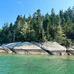 While Somes Sound is very deep we did manage to hit a rock looking for anchorage on the outskirts, the depth reader went from 5 feet under our keel to 0 in an instant. Kevin was worried that the rudder was damaged, luckily Gary has scuba gear and Kevin was able to check out the bottom. All appeared ok but we may haul it out for confirmation at some point. As we entered the Sound I saw two fins swimming, which I believe were porpoises because they were small and the fins were triangular. I learned that the porpoises like the shallower harbor waters, may be why they are called Harbor Porpoises.Leia mais