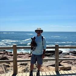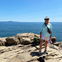 Friday, July 19 - We were able to do a 2 mile hike along the coastline. We took the Southwest Harbor bus to Bar Harbor then took the Sand Beach bus. From there we walked down a trail that followed the coast and went a bit into the woods. We ended at Otter Cliff and caught another bus back to Bar Harbor. A lot of buses for a short hike but beautiful scenery. We took Pepper so didn’t want to do a hike that involved rock climbing. Late afternoon we moved the boat to Somes Sound a few miles up the coast to meet up with Gary and Renee. Somes Sound is like a fjord; a glacier made inlet that is very deep, longer than it is wide, surrounded by steep cliffs and a shallow sill at the entrance. Somes Sound at its deepest is 175 feet and only 0.2 miles wide, however most fjords in Norway are over 1000 meters deep, or 32,808 feet! The Narrows of Somes Sound (the entrance) is a sill but not deep enough to cause a lack of oxygen at the bottom and alter the circulation of the water. Thus, geologically Some Sound does not meet the definition of a fjord. It is however more like a fjard; a glacier made embedment that is drowned by the sea. The lower portion of the Hudson River is the only acknowledged fjord on the east coast and has an area that is 800 feet deep.