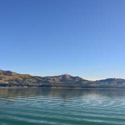 Gerade so rechtzeitig kommen wir schließlich am Hafen an und schon geht die Fahrt los. Wir fahren durch die wunderschönen Innenbucht von Akaroa.