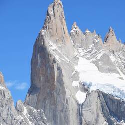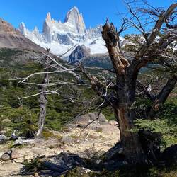 Wir haben das Zeitfenster getroffen, die Warterei hat sich gelohnt. Wir sehen den Fitz Roy und die andern spitzen Berge bei schönstem Sonnenschein. Eine wunderbare 4Std. Wanderung zur Laguna CapriLæs mere