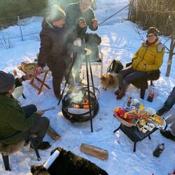 Trotz Minus-Temperaturen geniessen wir eine Outdoor-Grillparty mit ganzen Familie Barak-Nordvolt und ihren Freunden. Gewöhnungsbedürftig aber unterhaltsam und listig.