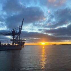 Das Schiff ist im Hafen angekommen und unser Camper ist ausgeladen. Der Tracker hat eine Strecke hier im Hafen aufgezeichnet.